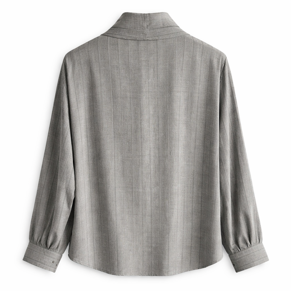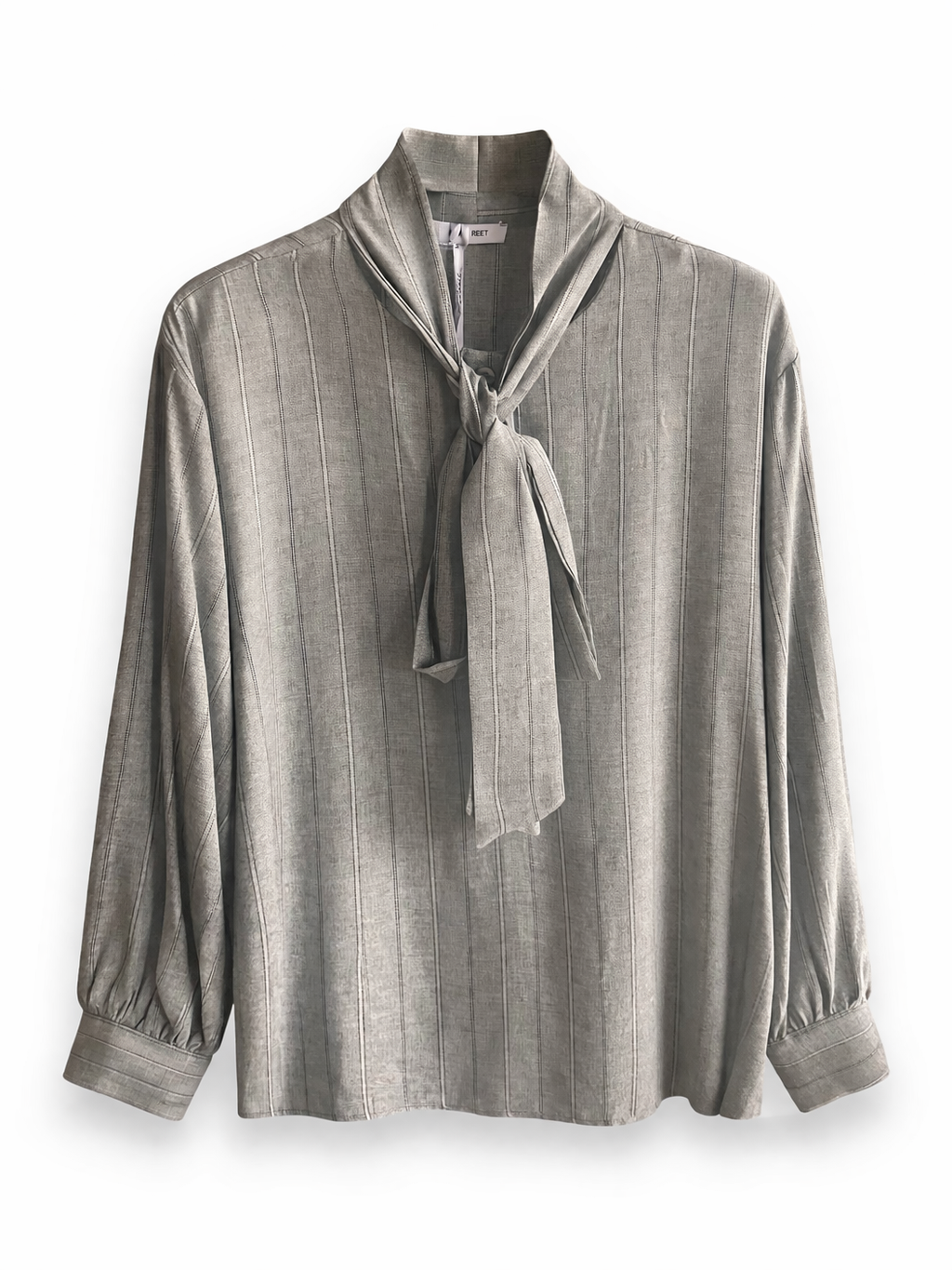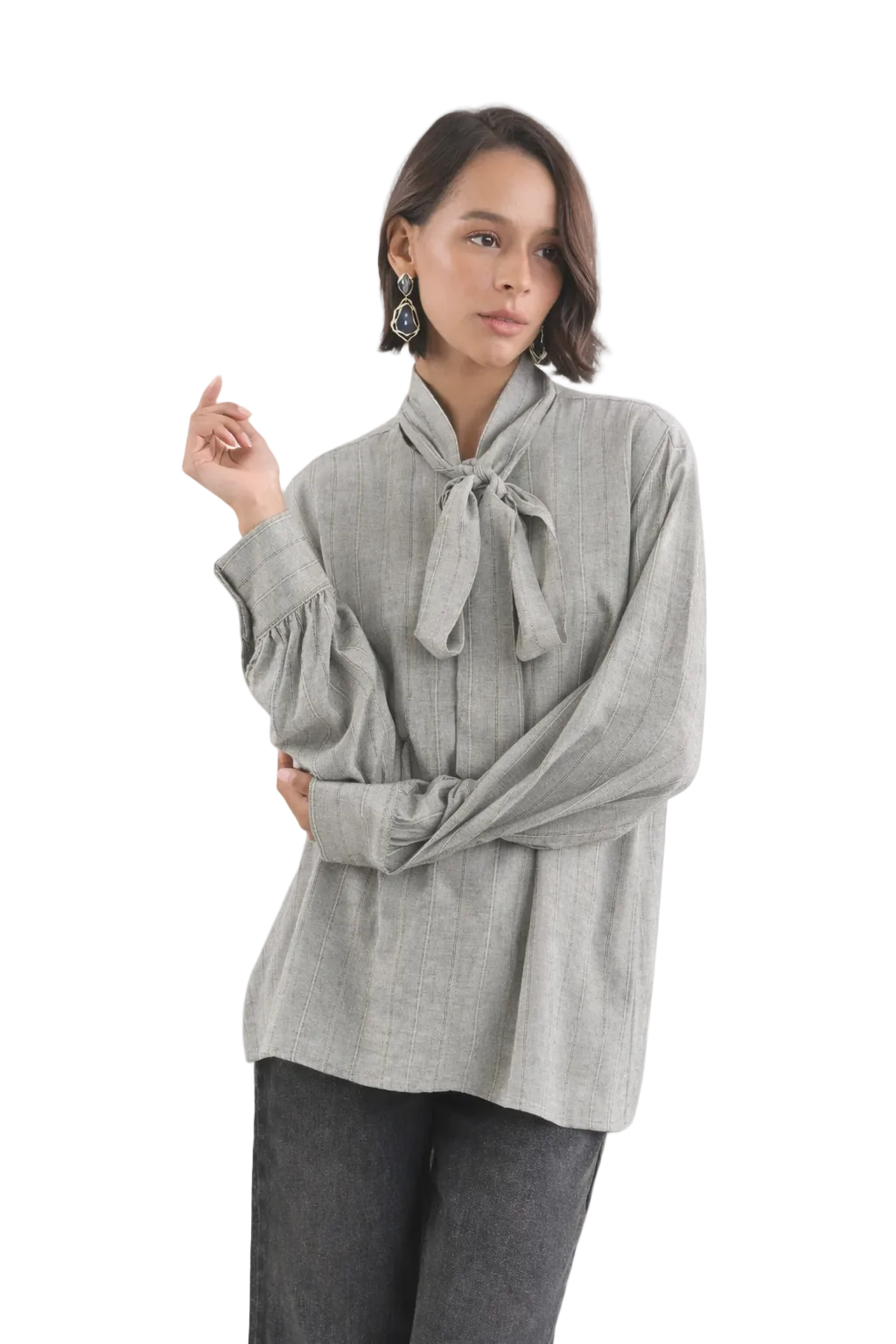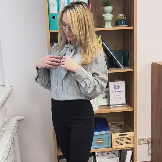 Дамската раирана риза с панделка е изискана дреха, която съчетава класическа елегантност и модерност. Детайлите с панделка на врата добавят женственост и индивидуалност, а вертикалните райета изтъняват фигурата с изтънчен ефект. Перфектна е с вталени панталони за професионална визия или с деним за по-небрежно-шик облекло. Задължителна дреха за търговците на дребно, които искат да предложат на своите клиенти универсална, елегантна и винаги модерна дреха.